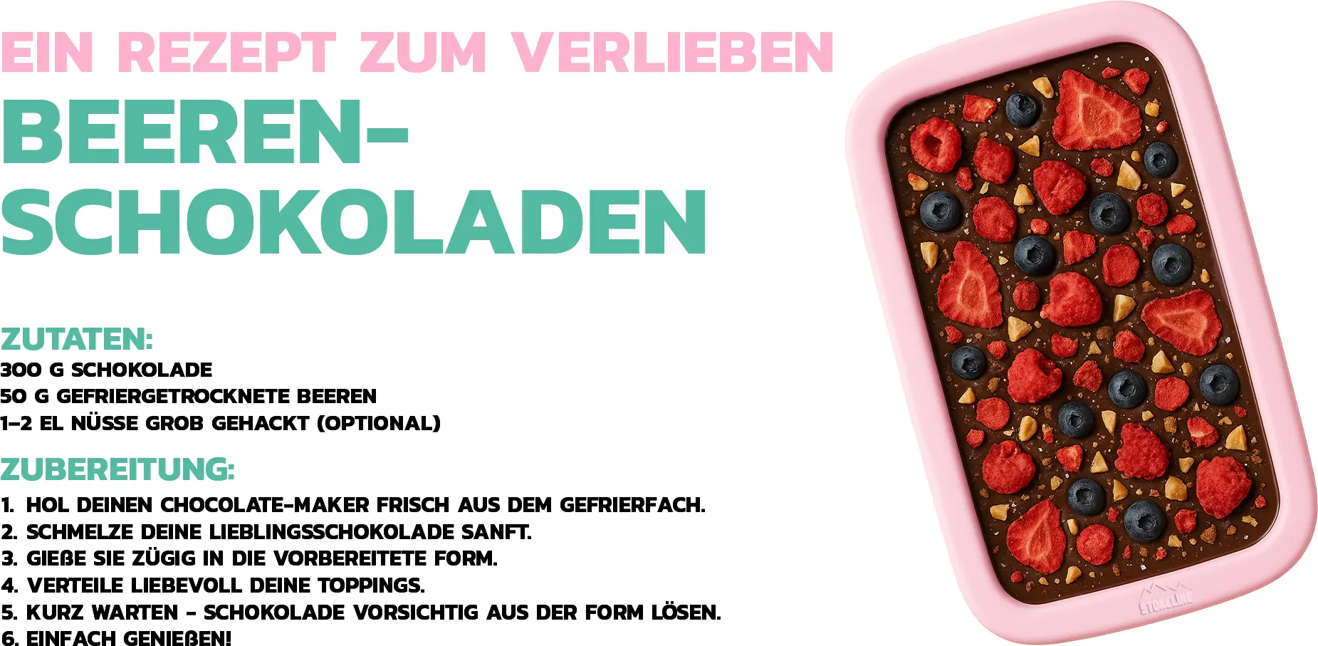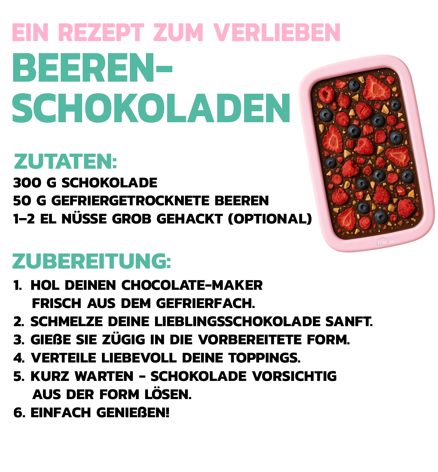 Mit dieser Schokoladenform kreierst du deine eigene Schokolade – in nur wenigen Minuten zubereitet und sofort zum Naschen bereit!